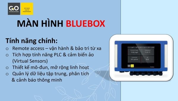 Hệ thống quan trắc nước thải của hãng GO được thiết kế chuyên dụng để giám sát liên tục chất lượng nước đầu ra, đảm bảo tuân thủ đầy đủ các quy định môi trường hiện hành. Giải pháp sử dụng nền tảng BlueBox với thiết kế mô-đun linh hoạt, dễ dàng mở rộng và tích hợp nhiều cảm biến khác nhau. Hệ thống cho phép truy cập và bảo trì từ xa, quản lý dữ liệu tập trung, phân tích thông minh và cảnh báo kịp thời.